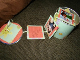 This was a fun project to make! It is going to be my mother's day cards for my mom and my MIL. I am pretty sure that they are going to like it since it has pictures of their grandchild in it! It also reuses a "can" that I would have otherwise thrown away so it is also green!