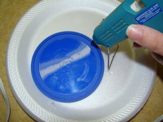 10. Using hot glue attach your paper circle to the lid.