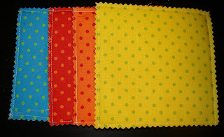 Here is what you will need:5 X 5 inch square pieces of fabric (you will need two per coaster, I made 4 coasters so I had 8 squares)