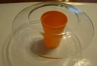 4.) Place your plate on a cup with the bottom facing up. I found it was easier to work with this way!