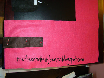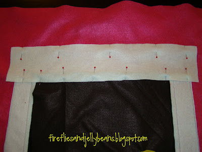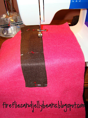 Now place the black piece with the Velcro side up on the side, pin and sew.
