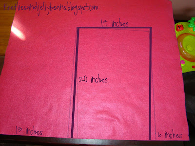 2. Cut out your sides. Lay the felt out flat (folded in half - that way you can cut 2 sides out at once!). When you cut out your sides you want to add an inch to each side length. So the sides of my house are 33 X 29 inches. The roof is going to be 33 X 33 inches. I used my yard stick to mark off each side.