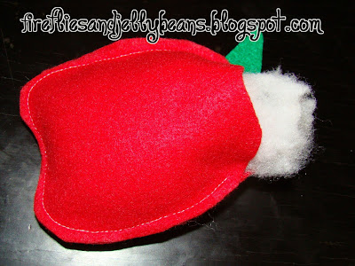 3. Sew the two sides together with RIGHT sides facing OUT. Leave a opening to fill with stuffing.