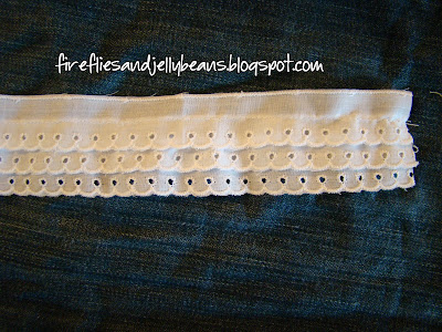 Optional... I layered my lace to give it more width... but you can start out but wider lace too. {This lace was free! Thanks Mom!!}