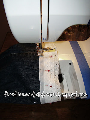 5. Sew your lace to your jeans. I used a zigzag stitch, you can use a straight stitch too.