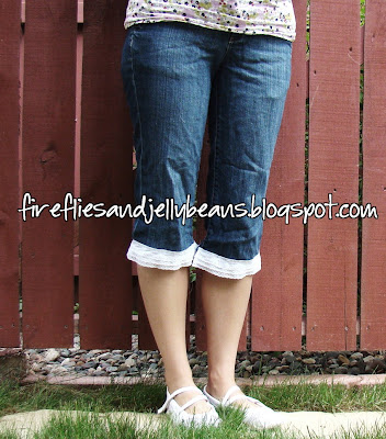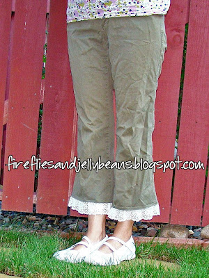 Those are super cute. Here I was thinking I'm the only one that would like cute capris like those.. Thanks for the awesome tutorial.. Once I'm handy enough with the sewing machine I might try to do that :)