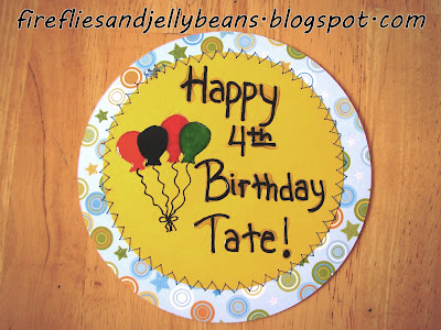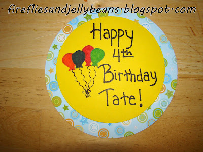 2. Write your sentiment on the plain color circle and draw an easy picture like balloons.