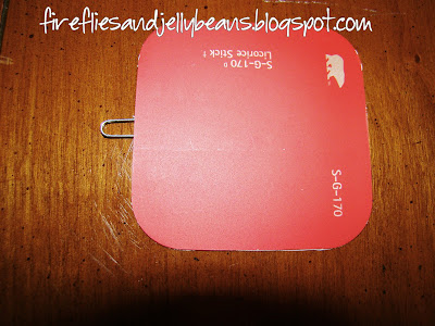 1. Take 2 paint samples of the same color and glue them together with a paper clip sticking out in between them.