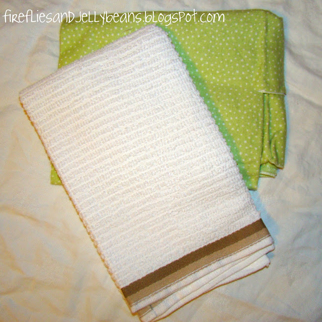 The Baby Boom Continues around here! Here is a quick and easy baby gift! Burp cloths... every new mom needs them! I used a hand towel to give it extra absorbency! I also added a little pop of the cute baby flannel on the front side!