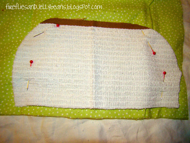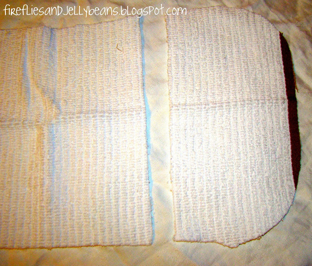 Use the towel piece you just cut off as a template and cut out a flannel piece. Leave about 5/8th of an inch extra on the bottom for a seam allowance.