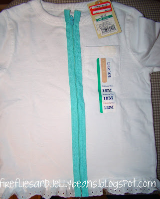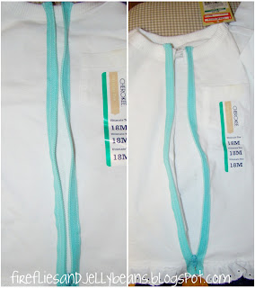 I then sewed it to the bottom of my shirt using a zig-zag stitch... I had the ends meet in the middle of the front where the zipper is going to be placed. (Sorry I worked too fast to take a picture of this part)