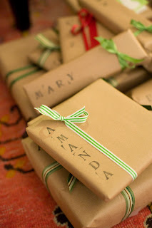 I love the brown paper packages look for gift wrap. Here are some fun ideas add to the brown wrapping to personalize the gift!