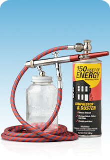 Preval's airbursh system is based off of their spray gun... which is also pretty sweet! It can turn any paint into a spray paint can... with not compressor attached. The spray gun has nice controllable mist that comes out to give all your project that professional look!