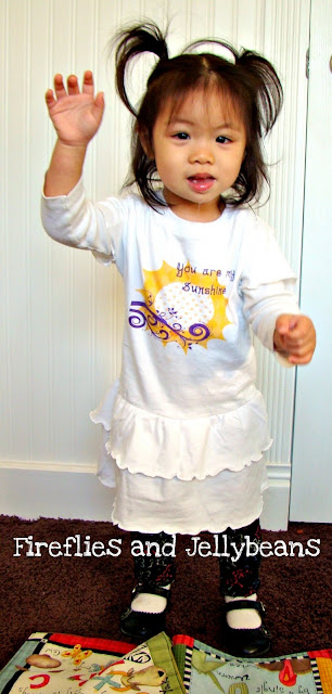 I was lucky enough to be able to sample a toddler dress for my daughter. My Daughter's name means "Sunshine and Happiness". So I created this graphic for her toddler dress to embrace her namesake! {Feel free to download the graphic for personal use! You can use it as a print or on your own toddler dress!}