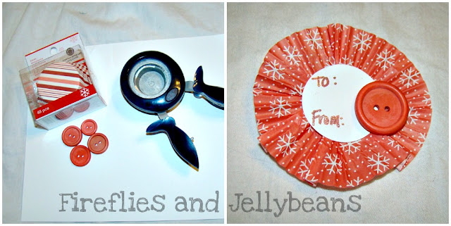 I used Cupcake wrappers, card stock, hole punch, Glitter markers, and buttons.
