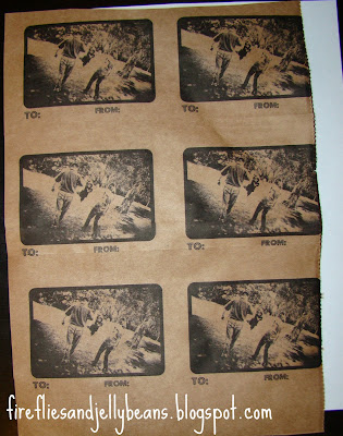 Vintage photo tags made from a paper bag. Yep! I printed these tags off on to a paper bag that I had. Cute and recycled!