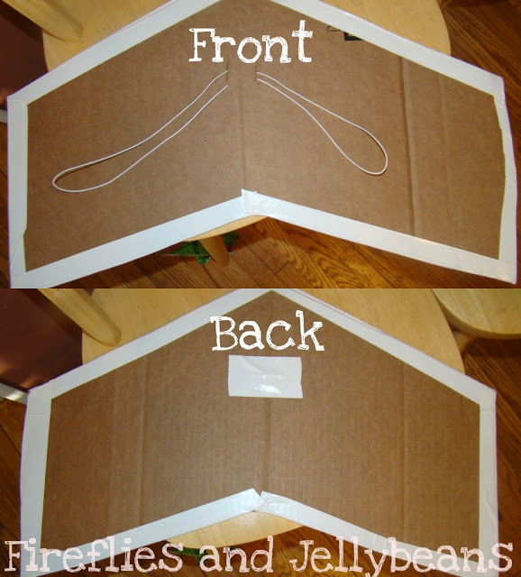1. Make your template. I taped 4 pieces of 8.5X11 pieces together and folded it in half and cut out this shape: