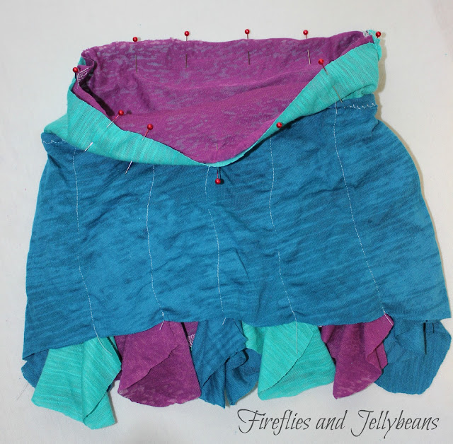 With right sides together pin your top and skirt together and sew... and you are done!!
