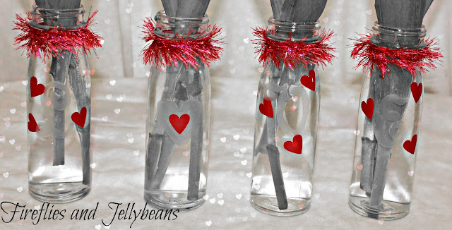 1. I cut out the letters L O V E out of my glass etched vinyl and placed them on my vases This stuff is great! It looks just like etched glass but it is vinyl- no mess and I can remove it if I want to later too!