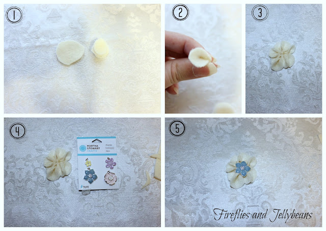 1: Cut out 6 circles out of felt. 1 for the base and 5 for the petals