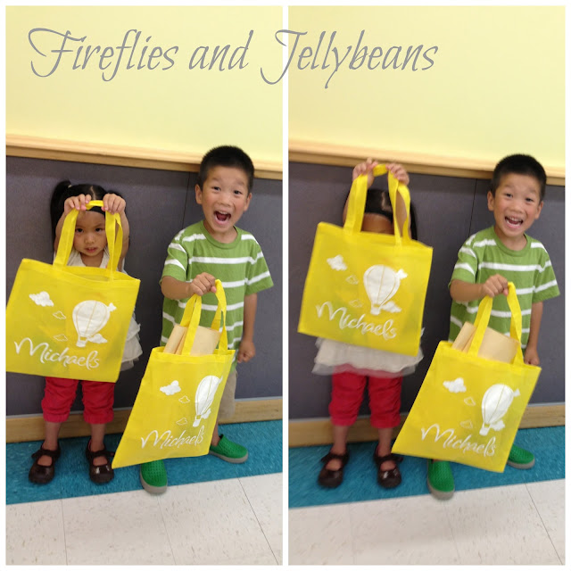 We also got these cute bags to bring our crafts home in! We bring them back with us each time and collect all the fun crafts! My kids love having their own bags. Everyday they grab their bags and ask if it is time for craft camp.
