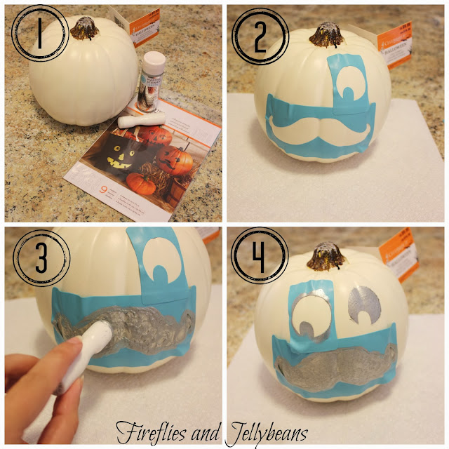 I have jumped on the mustache bandwagon and created a mustache stenciled pumpkin... it is super easy! And you can make it too! You can find the Halloween Martha Craft supplies as Micheals Craft Stores,