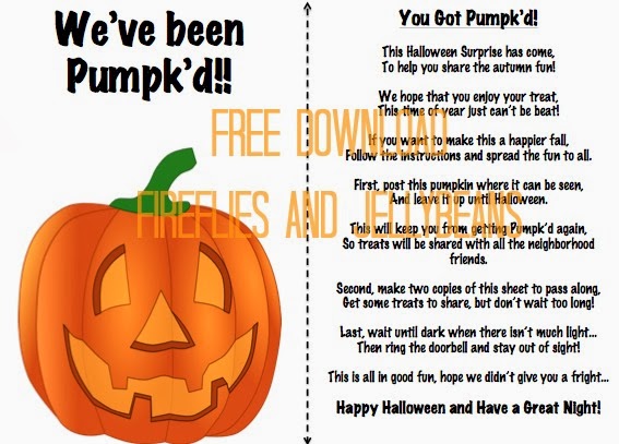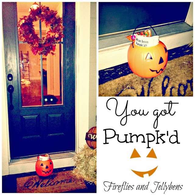 We don't like to do scary... it is just - well, too scary for us! We still like to participate in halloween, so, my sister came up with an alternative to "you got boo'ed"- You Got Pumpk'd! We liked the idea of having pumpkins on everyone's door instead of ghosts. My sister and her kids Pumpk'd some friends this weekend and being a good blogging sister she took pictures for me!