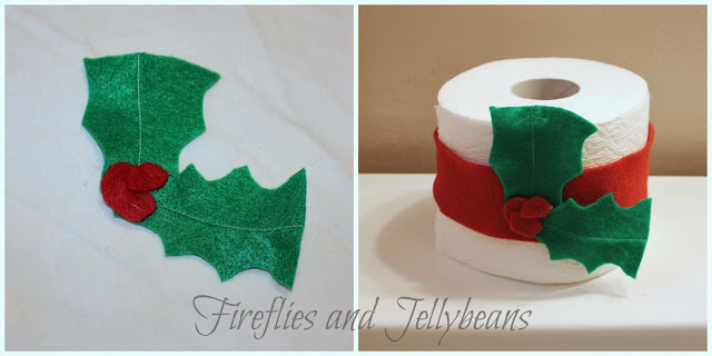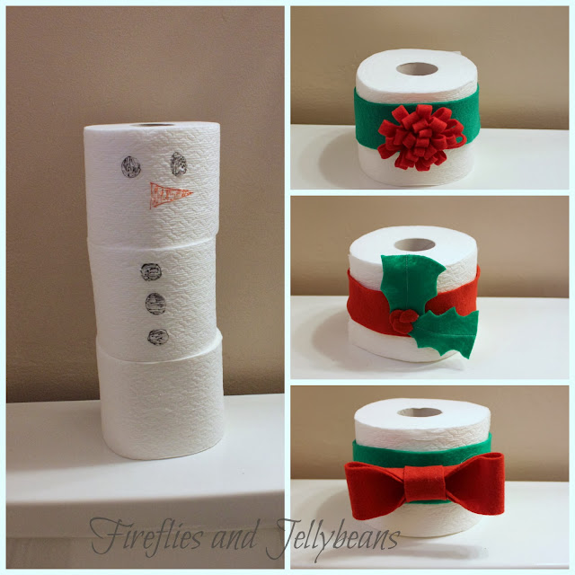 I like to leave a few rolls on the back of the toilet... and since it is Christmas time they got a holiday make over!