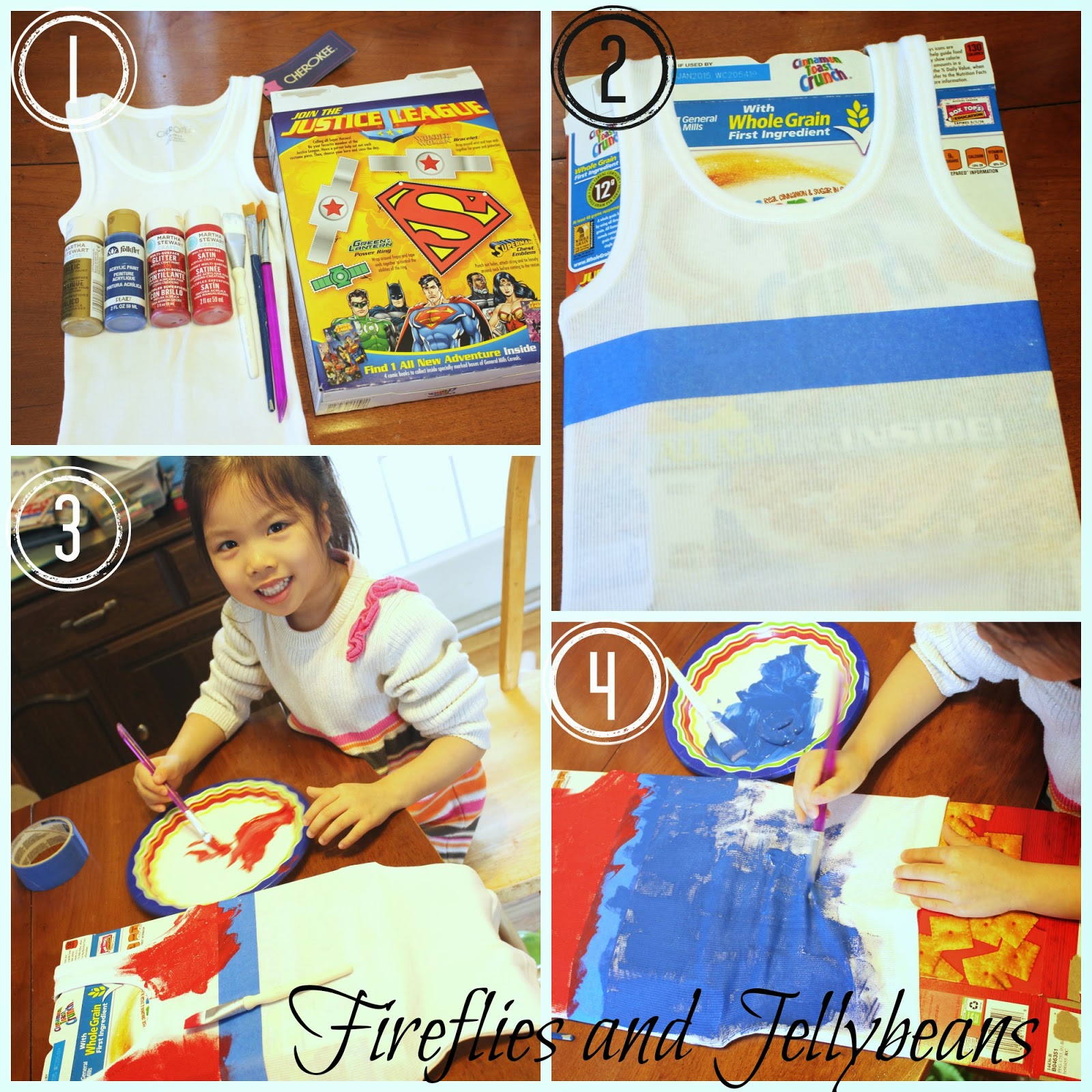 We have been Super Heroing with Big G Cereals. Now, through April Select Big G Cereals have FREE Justice League Comic books inside, plus fun Super Hero Accessories on the back of the box. My Son has been into Super Heroes for a while now - but my daughter (almost 4) is just getting to them. And she LOVES the girl ones- Wonder Woman being her favorite! So we worked together to make a Wonder Woman Tank Top.
