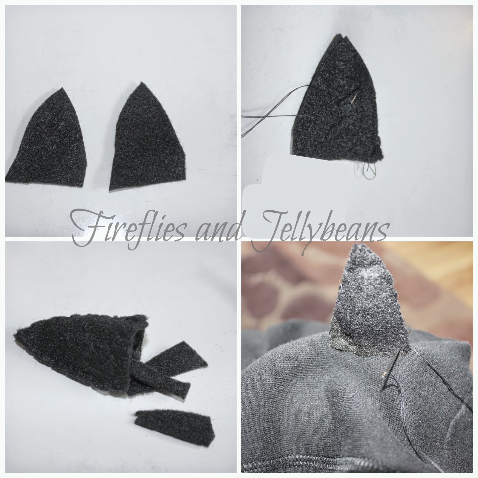 4. Sew to the hood of your sweatshirt. I put the hood on my son's head to see where the placement should be. I just hand-sewed it on.