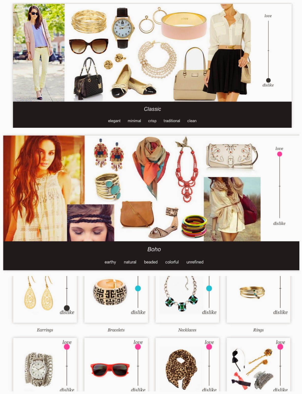 You take a short fashion survey to see what you love/like/dislike: