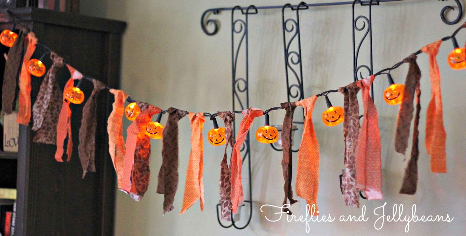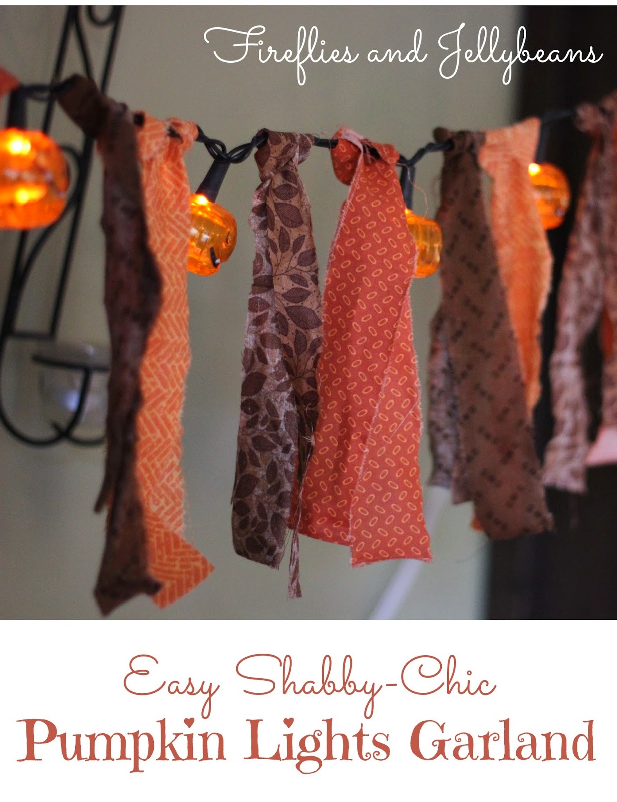 1. Gather supplies: Pumpkin Lights Strand, Fabric scrapes or fat-quarters in fall colors.