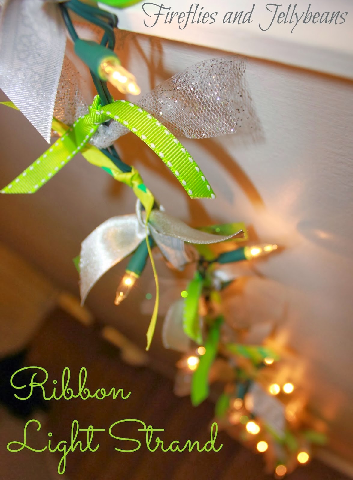 5. Repeat and repeat making a pattern across the light strand. I put 2 fabric strips in-between the lights. If you want a fuller look you can put more.
