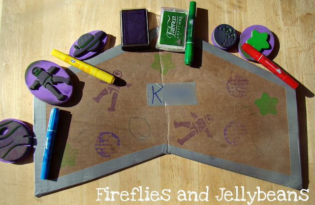 I made Space Ranger Wings (tutorial found here!) for each kid. Once everyone had arrived we decorated our Space Ranger Wings with markers and space stamps (found HERE). We wrote their names on the back so that they could bring them home.