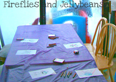 We had coloring sheets out (from online) as the kids arrived to give them something to do right away. We also collected several Buzz Lightyear toys (mostly from thrift stores) set out to play with as well.