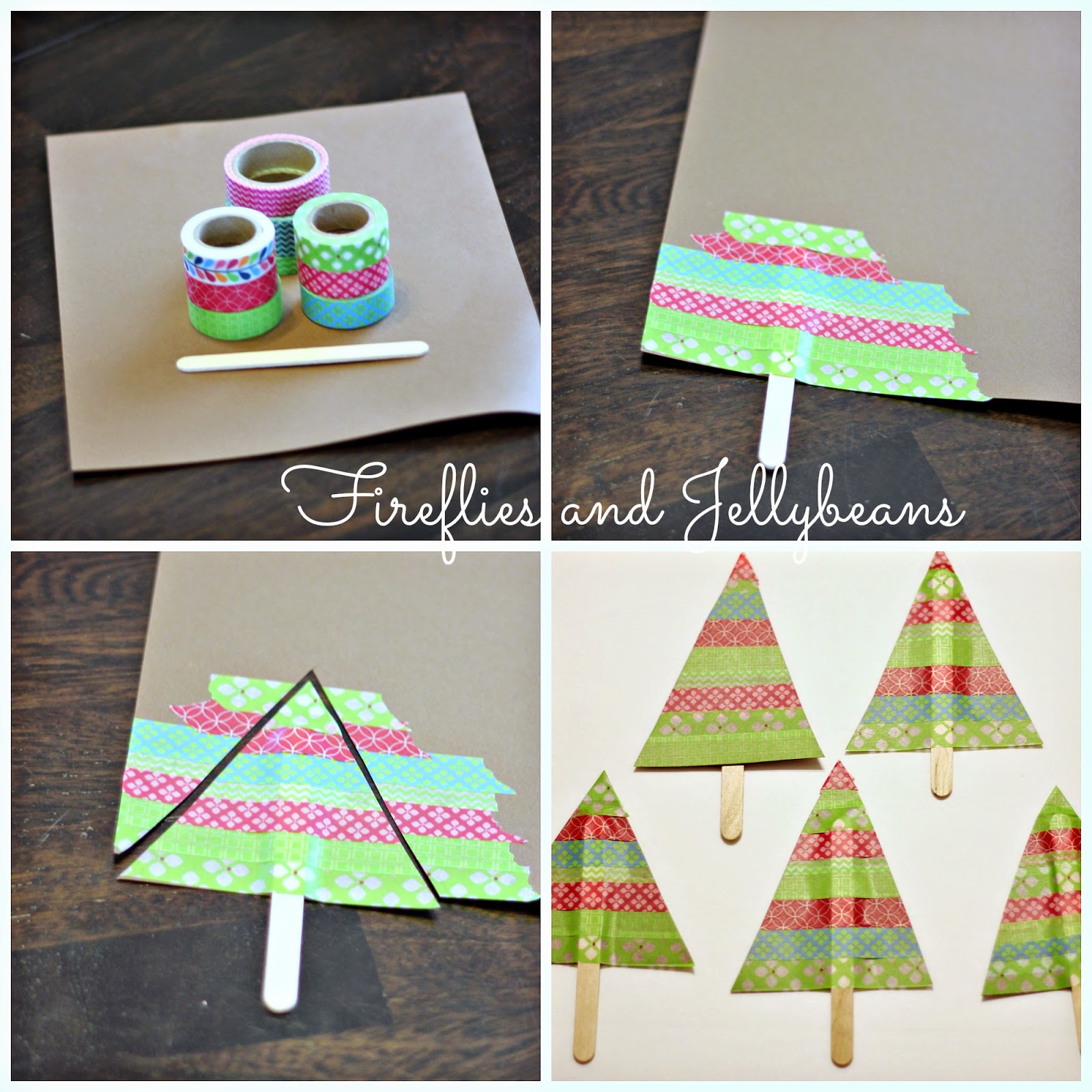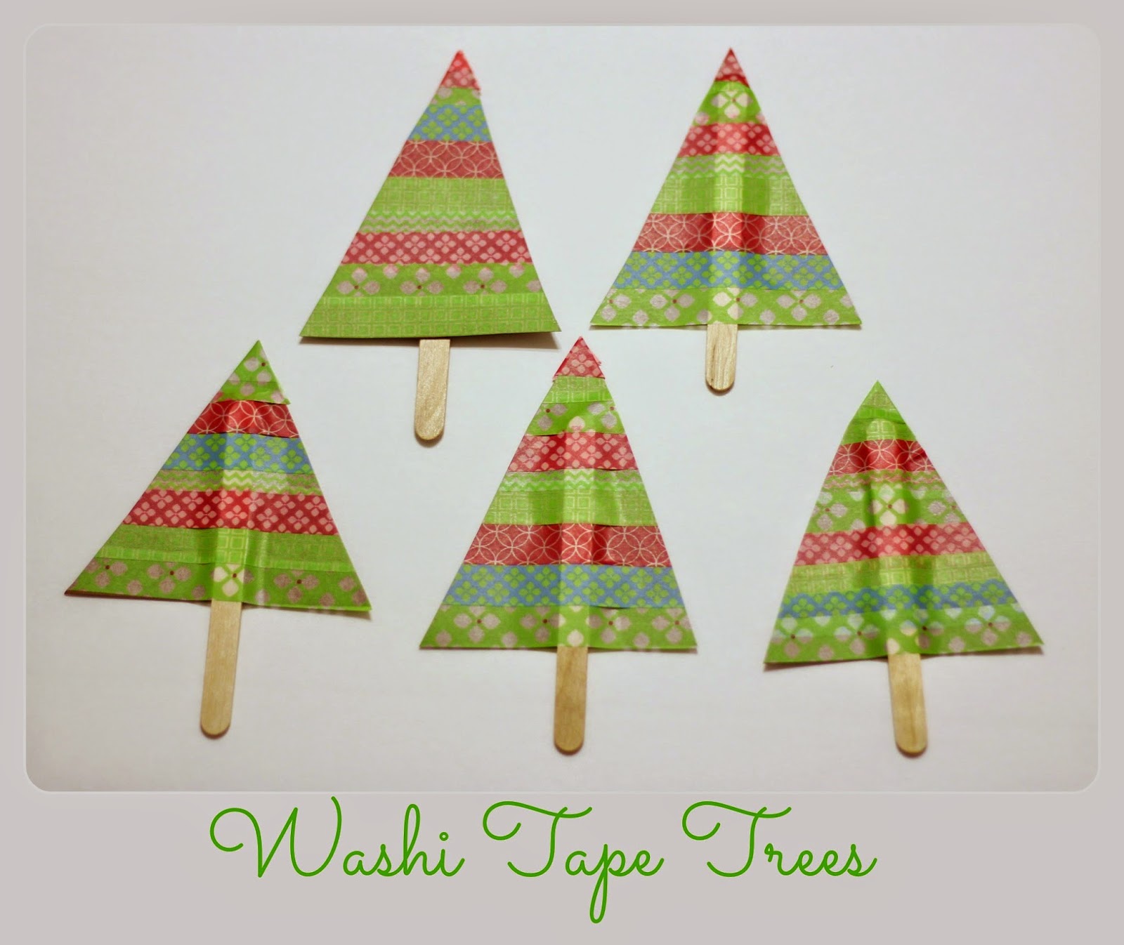 I am totally into Washi tape these days!  So here is another quick and easy craft you can do with Washi tape that will take less then 5 minutes to complete!  And the kids can help too!  A cute little tree for Christmas.