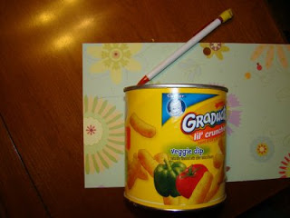 This was a fun project to make! It is going to be my mother's day cards for my mom and my MIL. I am pretty sure that they are going to like it since it has pictures of their grandchild in it! It also reuses a "can" that I would have otherwise thrown away so it is also green!