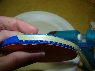 11. Also using hot glue attach the ribbon around the edge to the lid.