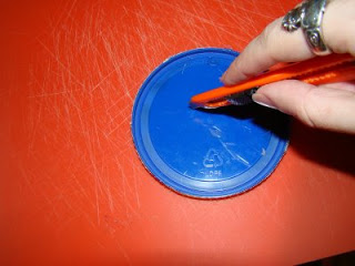 10. Using hot glue attach your paper circle to the lid.