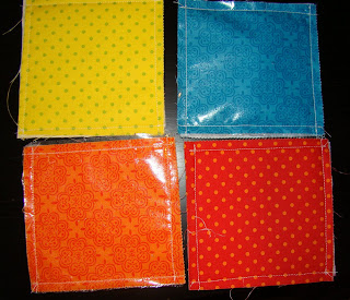 Here is what you will need:5 X 5 inch square pieces of fabric (you will need two per coaster, I made 4 coasters so I had 8 squares)