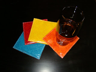 We are getting close to the holiday season. The time where we all start to think about entertaining. I am going to be featuring some ideas for hostess gifts, so that you are all set to make a cute, affordable, personal gifts for when you are invited to some one's house for a party or dinner. Today is vinyl fabric coasters. Who can have enough coasters when they are entertaining?