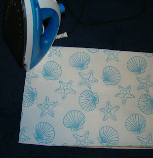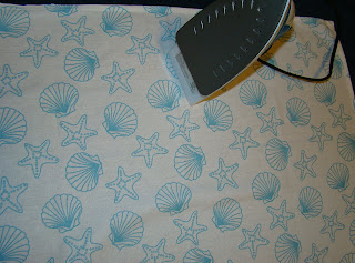 2.) Iron on the vinyl (using the package directions) to the FRONT side of the fabric that you want to be the top side of the coaster.