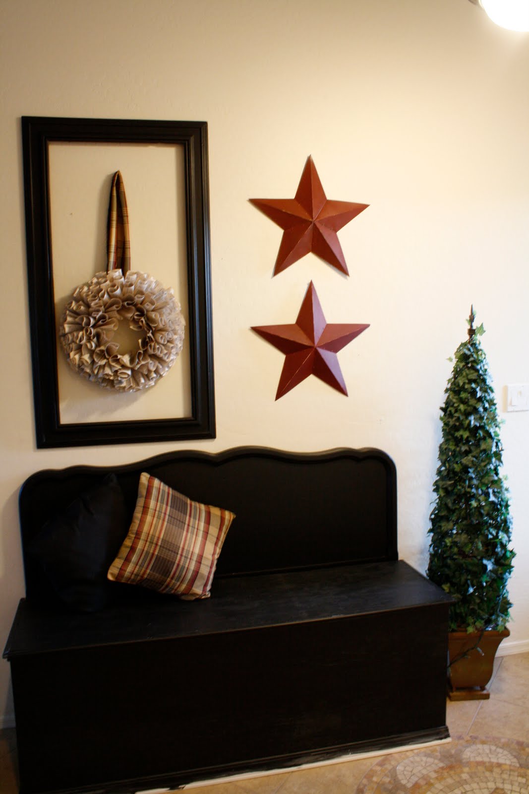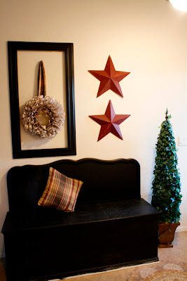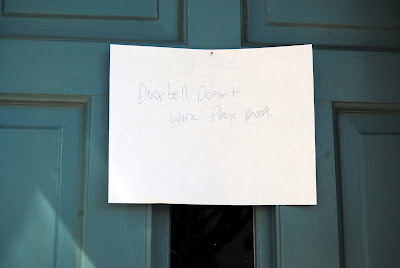 My front door was so ugly and naked without my bean wreath. But my hubby stepped up to the plate and decided to do some crafting of his own. See the lovely sign he made for our door? Thanks hon... *rolls eyes*