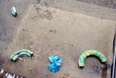 I wish I could say that this story has a happy ending. But tragically it doesn't. One Friday, while rushing out the door to score some crazy deals at Goodwill dollar day, I slammed the door a little too hard. And that's when I heard the sound of shattering glass. Who'd have thought jelly beans hitting the ground would sound like glass???? But, it did, and it smashed into pieces. Could we please have a moment of silence to honor all my hard work, gone, down the drain: