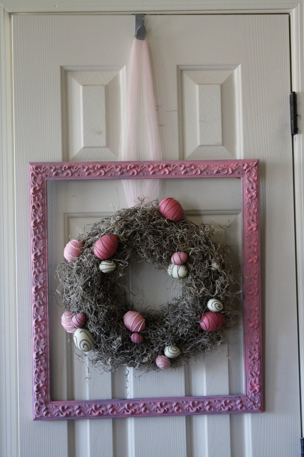 So, I went back to my dollar store and got some nice pastel speckled jelly beans, and this time I painted the wreath form white before I started gluing.