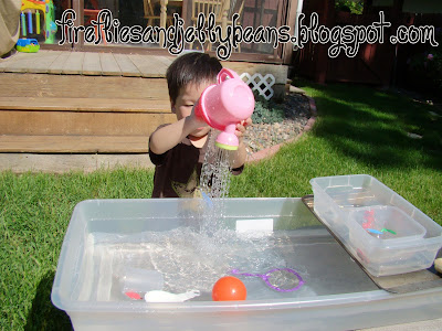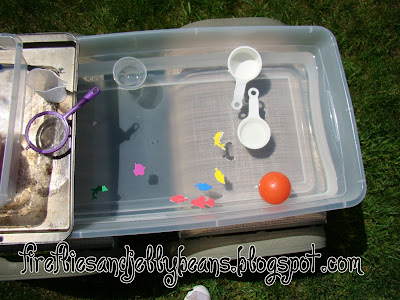 The other great thing about this water table is that it is easy to store! Just put all of your stuff back and store some stuff in your tote and you are set! Thanks Melissa for bringing this up! :)