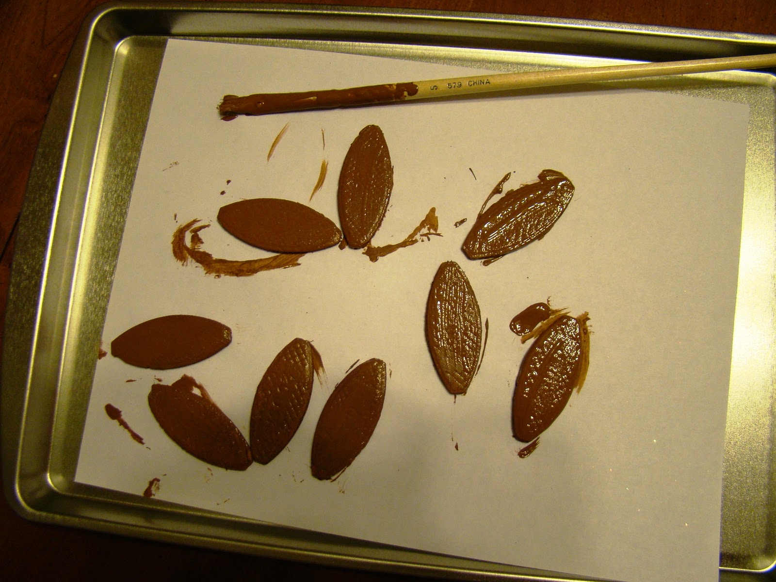 1. Paint your Biscuits brown on both sides and allow to FULLY dry