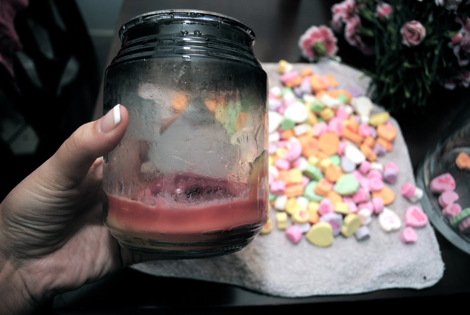 The flowers in the candle jar :)