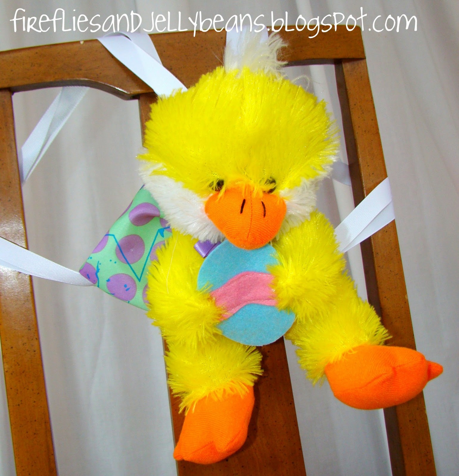 Linking to:Here is a SUPER cute alternative to the Easter basket. It is an Easter Backpack. My kids are obsessed with backpacks. They love to wear them, put things in them, and take the off to leave on the floor for me to trip on! I found these cute plush Easter animals at the Dollar Store thought "Why not make them into a backpack?" {does anyone else's brain work this way?!}