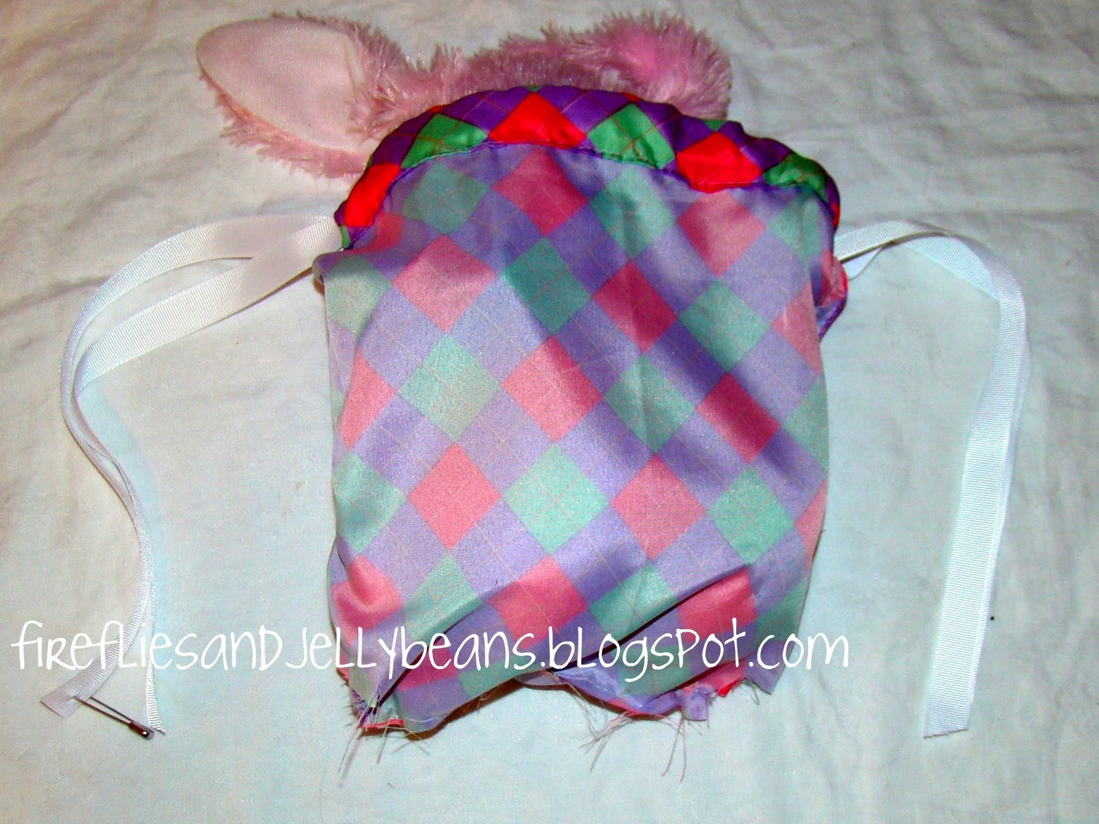 Pull on your ribbons and your have a cute Drawstring backpack with an Easter plush toy on the front!